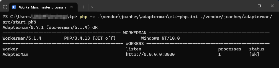-d)php -c .\vendor\joanhey\adapterman\cli-php.ini ./vendor/joanhey/adapterman/src/start.php