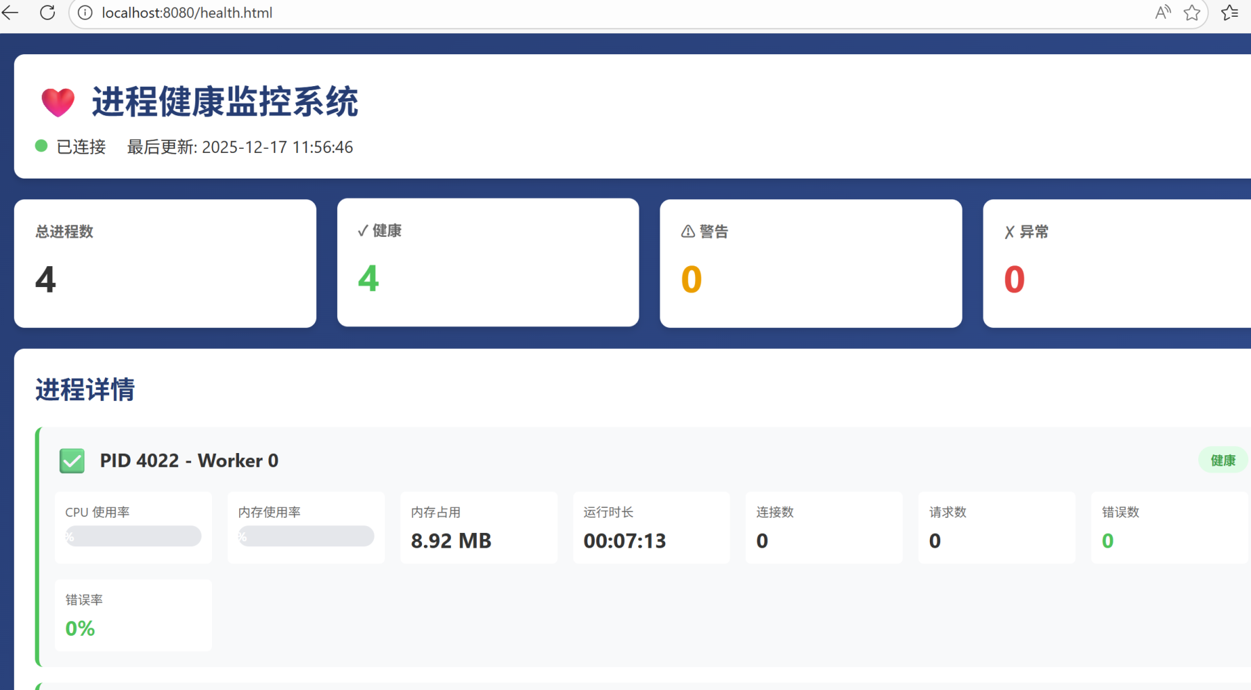 // 业务 Worker:被监控的工作进程