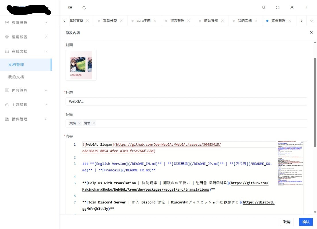使用webman和amis构建的docsify文档管理应用,可以制作单页文档和多页文档,生成的文档是标准的Docsify文档: