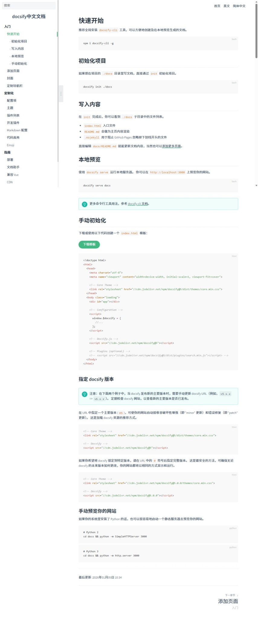 Docsify文档可全文检索,自动生成边栏等