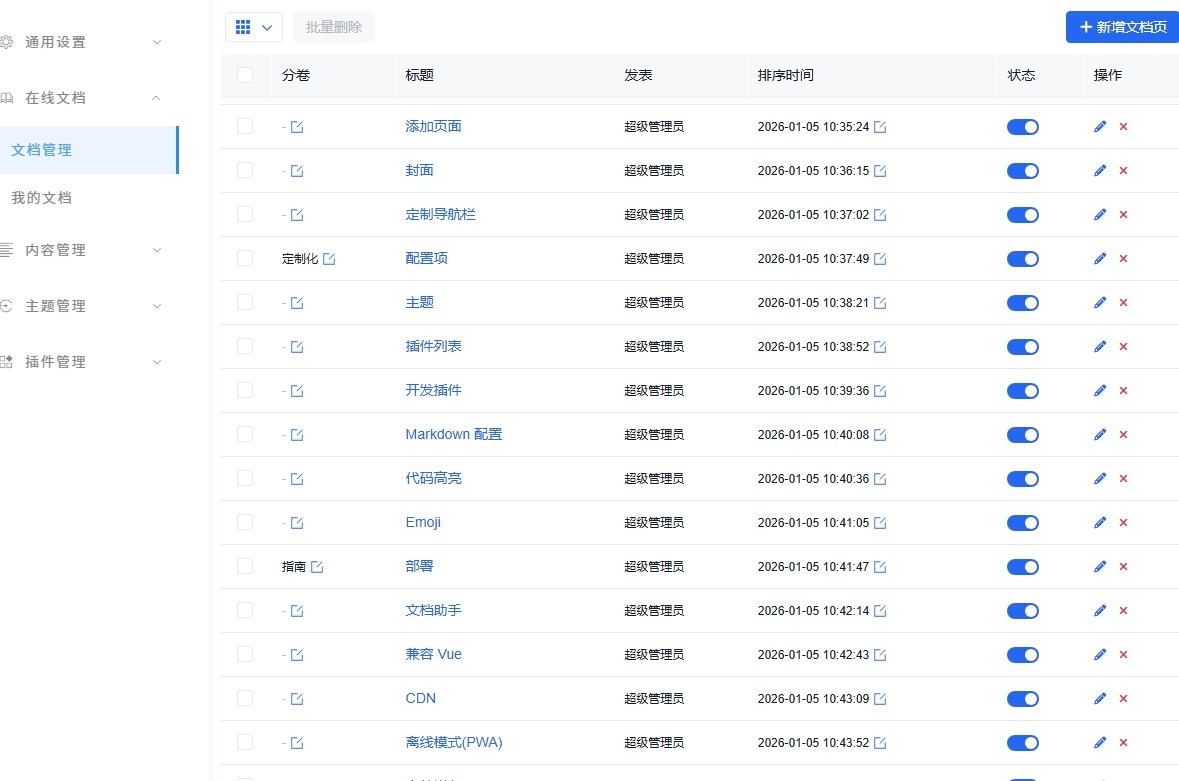 使用webman和amis构建的docsify文档管理应用,可以制作单页文档和多页文档,生成的文档是标准的Docsify文档