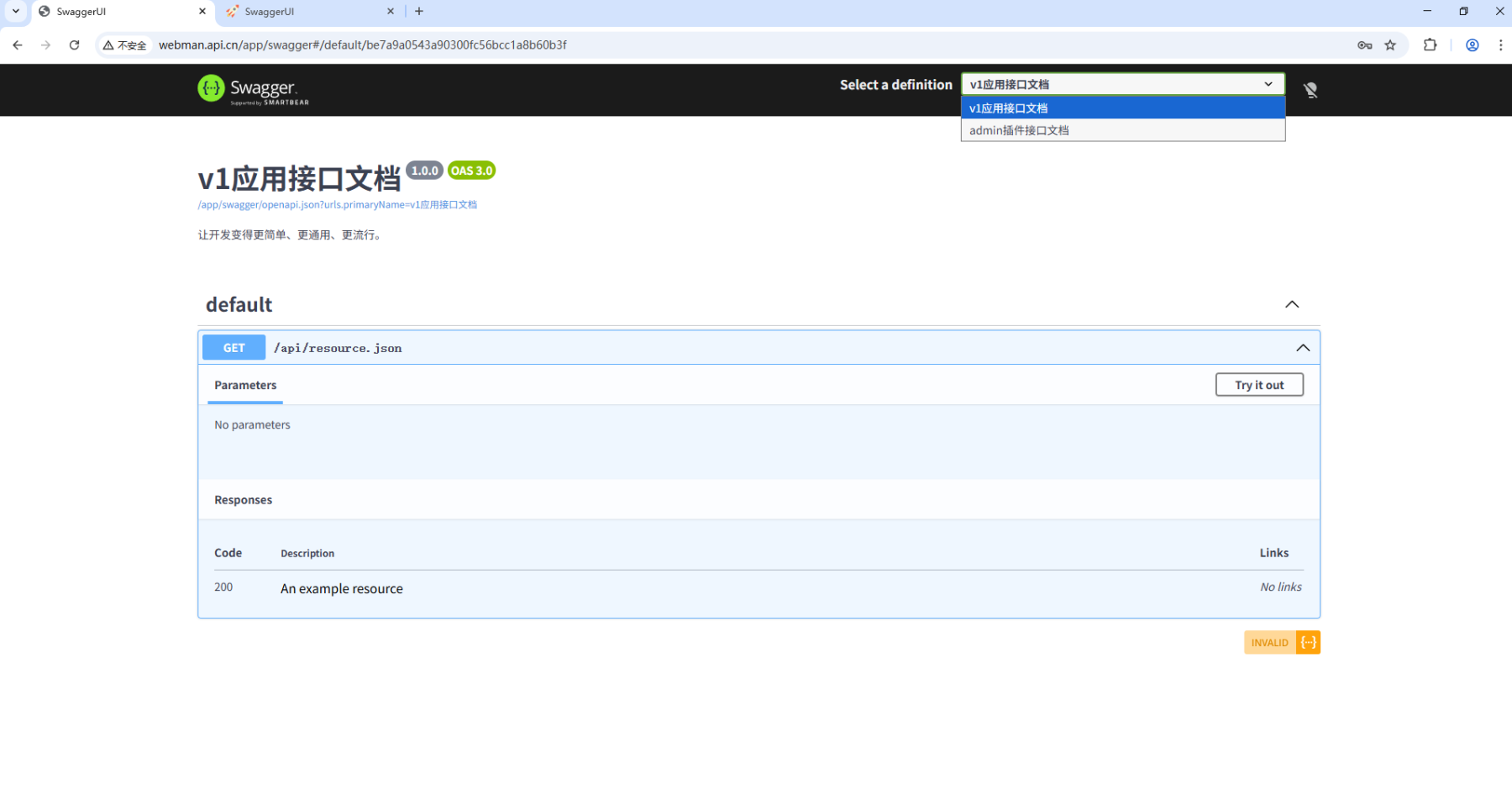// swagger应用分组,支持插件和主应用,下面两个demo可删除