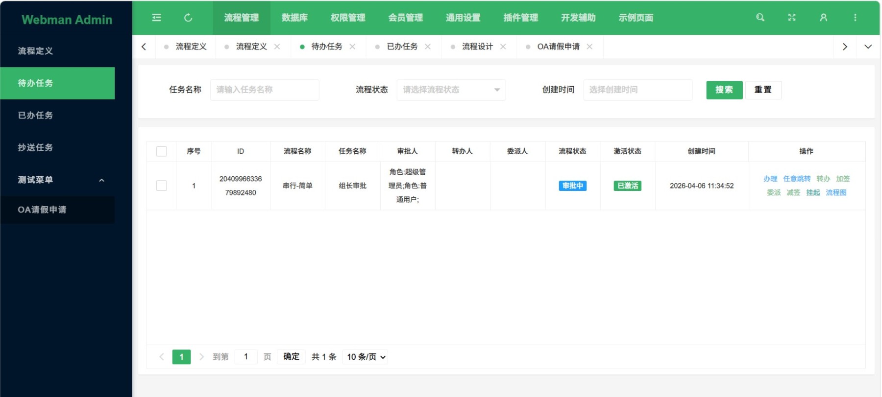 审批功能全面:支持通过、退回、撤销、拿回、任意跳转、终止、转办、票签、委派和加减签、互斥、并行、自动审批、远程访问和脚本执行服务等多种审批操作,以及条件表达式、办理人表达和监听器等高级功能。