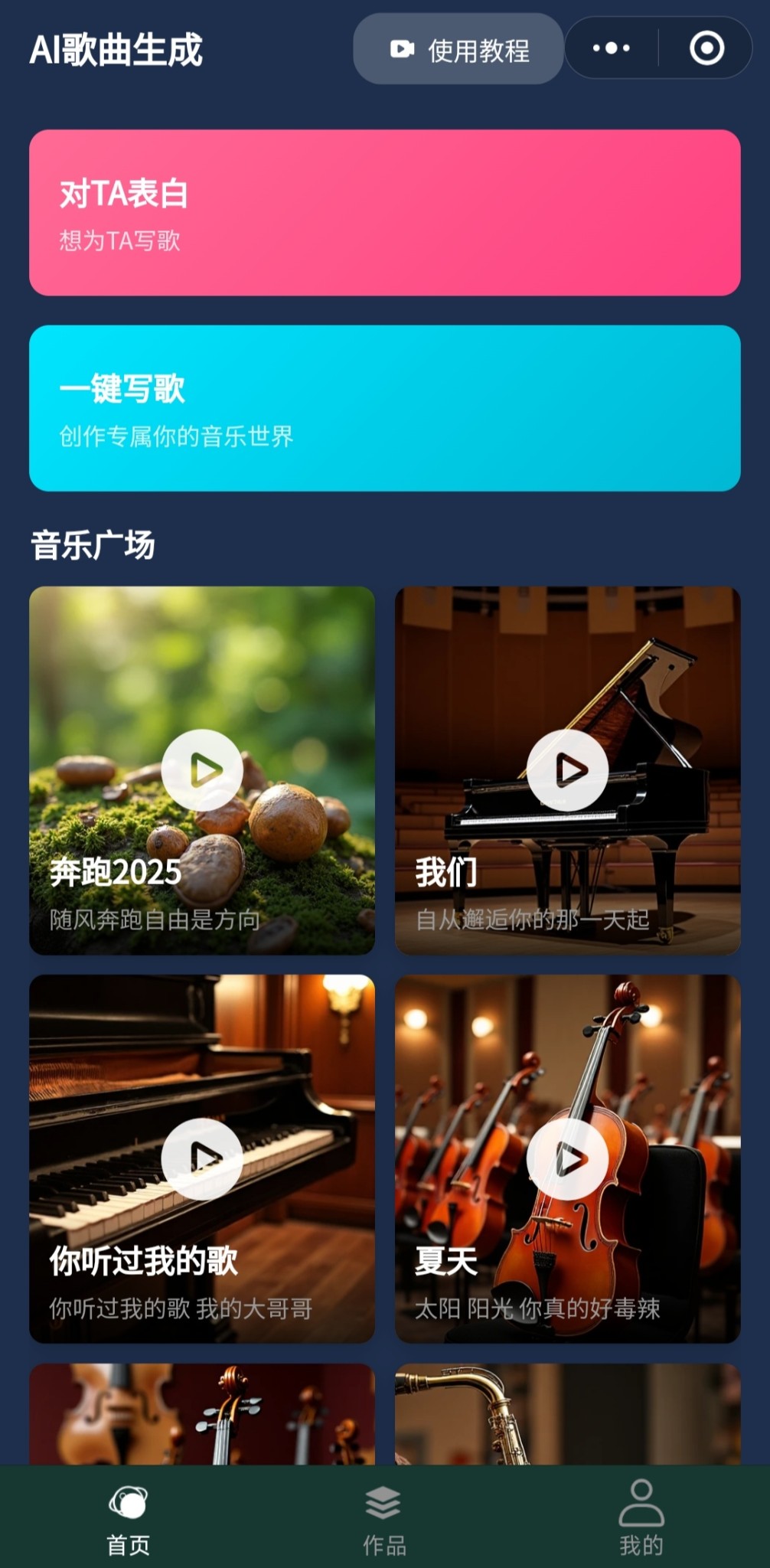 3、作品:主要为用户个人歌曲库,用户可以在本模块管理自己创作生成后的歌曲。
