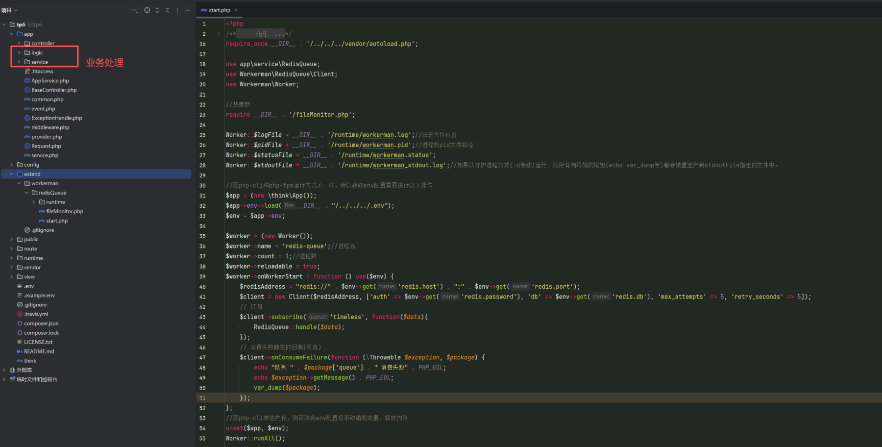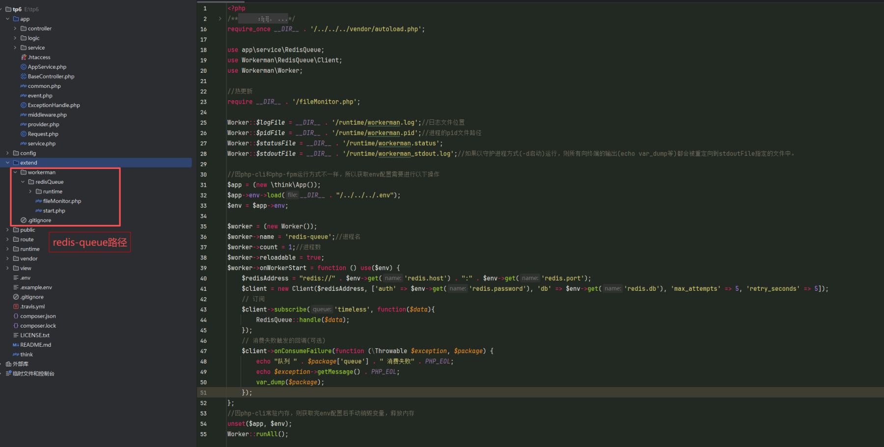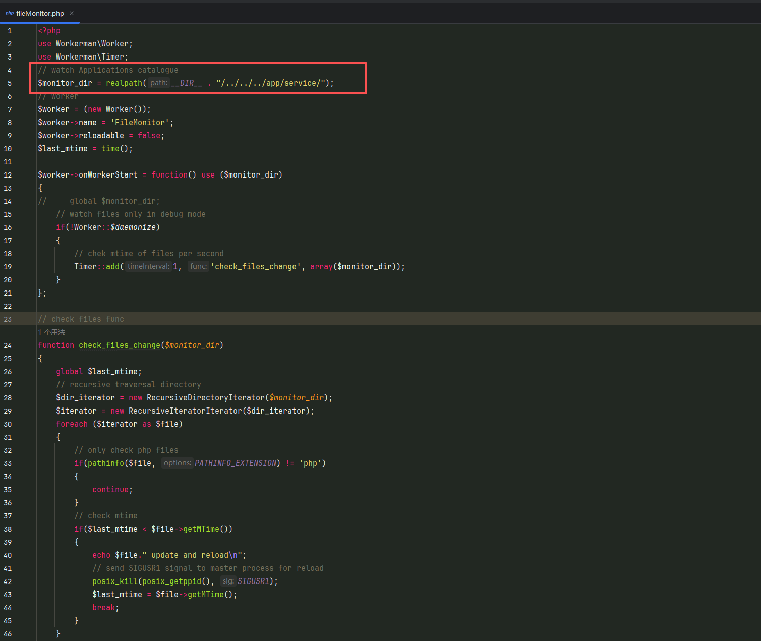 我是在tp框架里面用workerman/redis-queue组件 https://github.com/walkor/workerman-filemonitor 热更新支持多个文件路径吗? redis-queue路径: 业务处理: 热更新文件: 热更新文件怎么编写才能使app\logic和app\servic目录下支持热更新 目前测试修改app\servic下文件内容,也不会触发热更新
