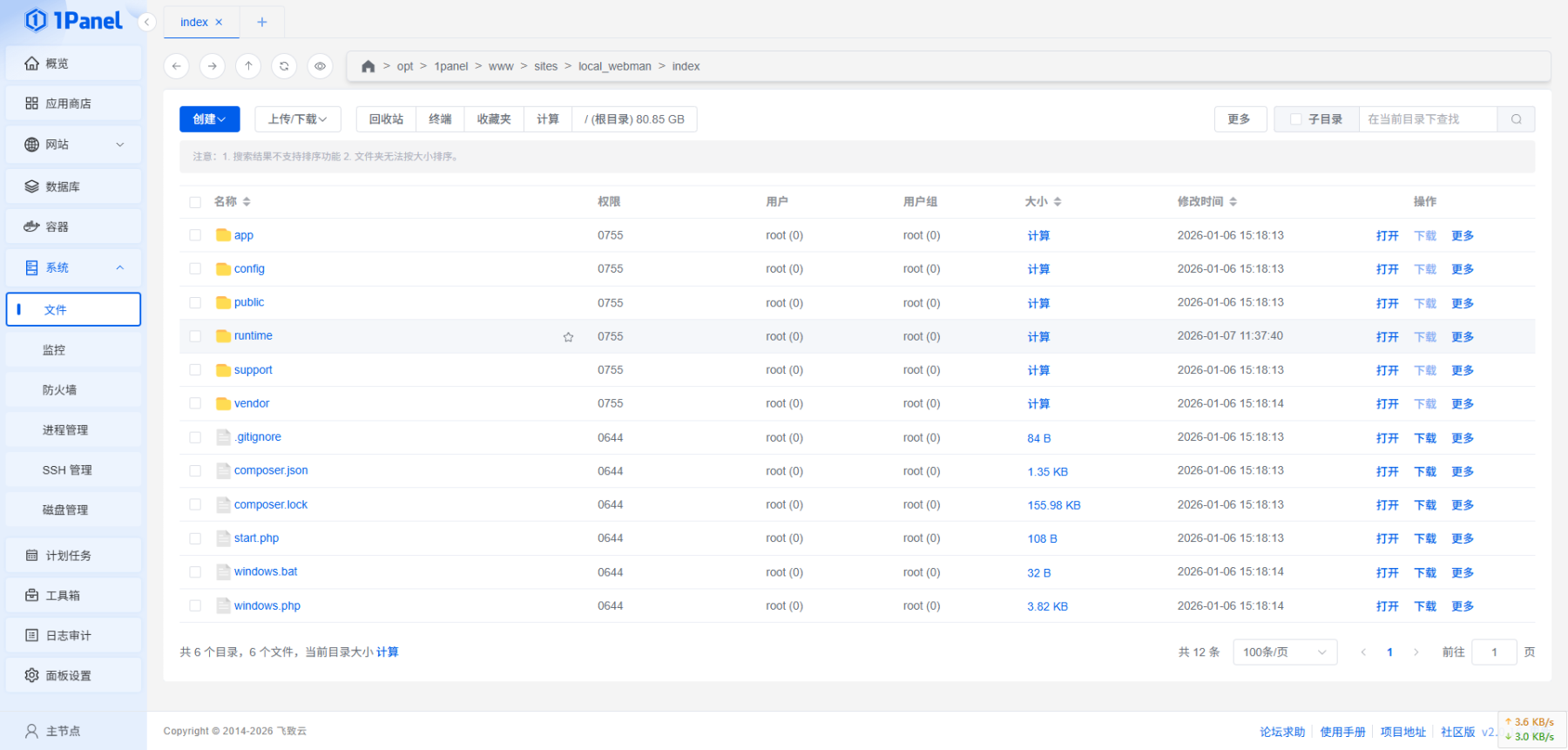 5、上传Webman到网站目录里(process.php里监听的是:http://0.0.0.0:23485 与反向代理地址端口一致)